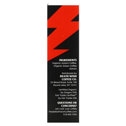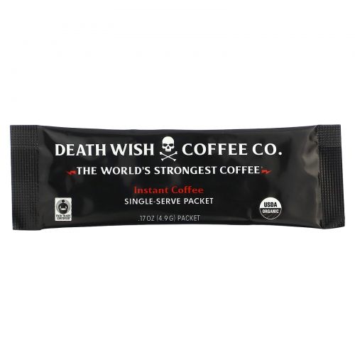 Описание товара Death Wish Coffee, The World's Strongest Coffee, растворимый кофе, темная обжарка, 8 порционных пакетиков по 4,9 г (17 унций)
