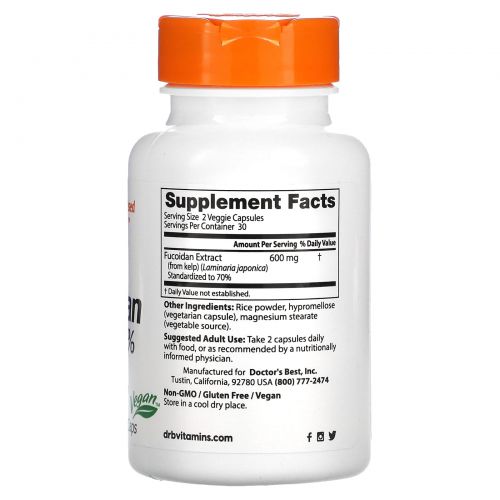 Описание товара Doctor's Best, Фукоидан Best Fucoidan 70%, 60 вегетарианских капсул