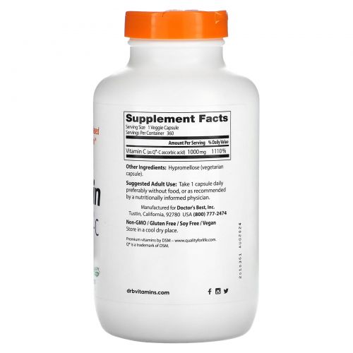 Описание товара Doctor's Best, Витамин С (Best Vitamin C), 1000 мг, 360 растительных капсул