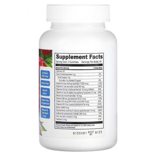 Описание товара Doctor's Finest, Средство для ухода за волосами, кожей и ногтями, с биотином и антиоксидантами, малина, 90 жевательных таблеток