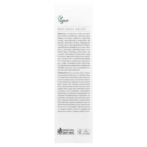 Другие ИнгредиентыВода, кокоглюкозид, глицерин, динатрия кокоамфодиацетат, бутиленгликоль, 1,2-гександиол, натрия кокоил и аминокислоты яблока (13260 част. / млн), хлорид натрия, кокоил глицинат калия, кокоил глутамат натрия, кокоат калия, гексиленгликоль, полиглицерил-10 лаурат, этилгексилглицерин, двунатриевая ЭДТК, диацетат глутамата тетранатрия, гиалуронат натрия, экстракт семян периллы (Perilla ocymoides), глицин (2,45 част. / млн), вода из бамбука (Bambusa vulgaris), серин (1,36 част. / млн), глутаминовая кислота (1,26 част. / млн), аспарагиновая кислота (0,79 част. / млн), лейцин (0,69 част. / млн), аланин (0,44 част. / млн), лизин (0,42 част. / млн), аргинин (0,38 част. / млн), тирозин (0,34 част. / млн), фенилаланин (0,32 част. / млн), пролин (0,3 част. / млн), треонин (0,3 част. / млн), валин (0,3 част. / млн), изолейцин (0,27 част. / млн), каприловый / каприновый триглицерид, гистидин (0,15 част. / млн), цистеин (0,115 част. / млн), метионин (0,115 част. / млн), бисаболол, гидрогенизированный лецитин, керамид NP, фитостерил / октилдодецил лауроил глутамат.
