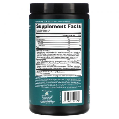 Описание товара Dr. Axe / Ancient Nutrition, Органическая суперзеленая, мята, 205 г (7,23 унции)