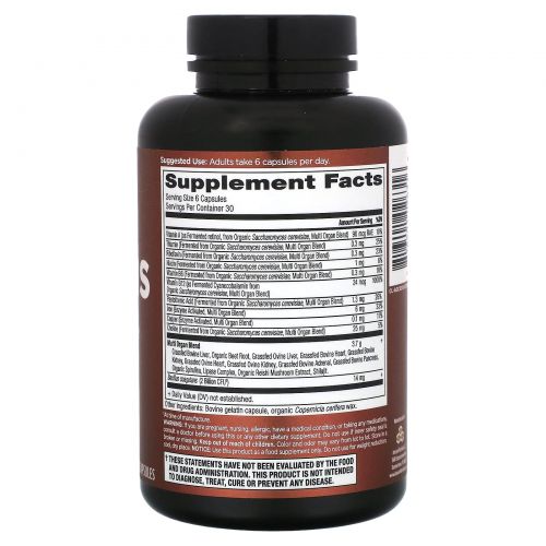 | Мультиорганная смесь Печень крупного рогатого скота, полученная на травяном откорме, органическая свекла, печень говядины на травяном откорме, сердце крупного рогатого скота на травяном откорме, почка крупного рогатого скота, сердце на травах, почка крупного рогатого скота, надпочечники крупного рогатого скота, экстракт поджелудочной железы крупного рогатого скота, органическая спирулина, комплекс шампиньонов, органическая спирулина | 3,7 г | + |