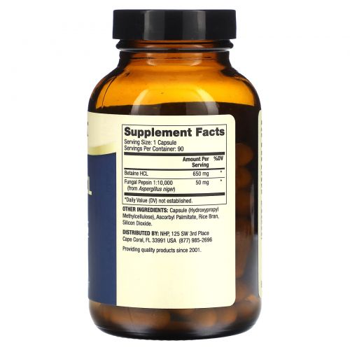 Описание товара Dr. Mercola, Бетаин гидрохлорид и пепсин, 650 мг, 90 капсул