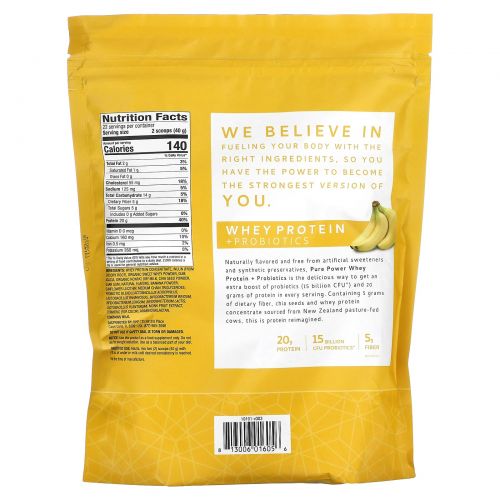 Dr. Mercola, Pure Power, сывороточный протеин с пробиотиками, со вкусом банана, 880 г (1 фунт 15 унций)
