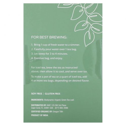 Описание товара Dr. Mercola, Solspring, Biodynamic, органический имперский зеленый чай, 18 чайных пакетиков, 36 г (1,27 унции)