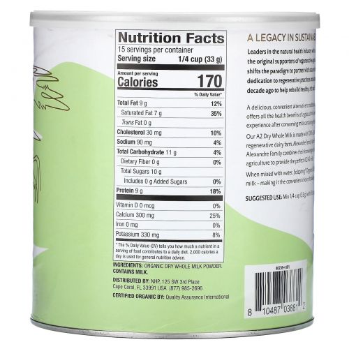 Наше сухое цельное молоко A2 производится из 100% органического молока A2/A2, полученного с первой в Америке сертифицированной регенеративной молочной фермы — семейной фермы Alexander. Шесть поколений семейных фермеров работают в семейных фермах. Благодаря этому они объединяют свои знания в области производства молочных продуктов и страсть к регенеративному сельскому хозяйству, чтобы производить идеальное молоко А2/А2.