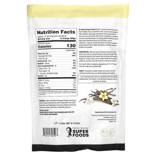 Описание товара Dr. Murray's, Super Foods, 3 Seed Protein Powder, Vanilla, 16 oz (453.5 g)