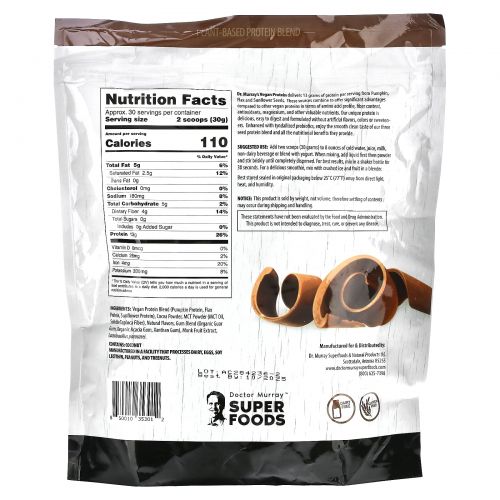Описание товара Dr. Murray's, суперфуды, протеиновый порошок из 3 видов семян, шоколад, 908 г (2 фунта)