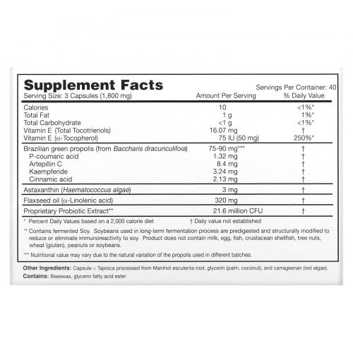 Мощный зеленый бразильский прополис + экстракт пробиотиков + антиоксидант астаксантин & Противовоспалительная защита