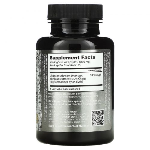 Дикая сибирская чага от Dragon Herbs — это экстракт полного спектра из чаги (Inonotus obliguus), медленно растущего древесного гриба, который естественным образом произрастает на стволах березы в Сибири. Созревший гриб чага собирается в дикой природе в располагающихся в удаленных от цивилизации безлюдных лесах субарктической сибирской тайги, аутентичного (Di Tao) региона сбора этого удивительного гриба. Гриб чага богат активными полисахаридами, меланином, фенольными соединениями и тритерпеноидами типа ланостана. Это мощный антиоксидант. Экстракт чаги получают с помощью суперсовременной технологии, позволяющей сохранить полный профиль активных веществ.