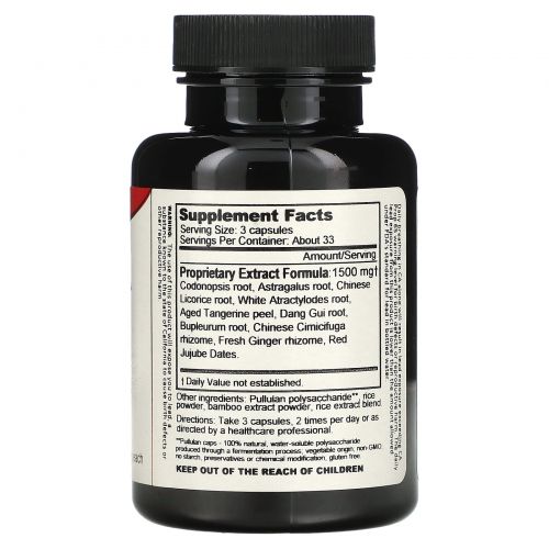 | Собственная формула экстракта: Корень кононопсиса, корень астрагала, корень солодки, корень айтарилои Бай-жу, стареющий мандариновый корсет, корень Данг-Куай, корень буплюрума, корневище китайской цимитифуги. Свежий корневище имбиря, фрукты из красного Jujube. | 500 мг | † |
