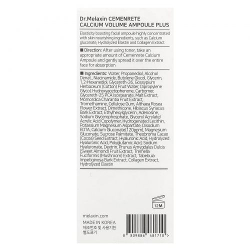 Описание товара Dr.Melaxin, Cemenrete, Calcium Intense, ампула, 30 мл (1,01 жидк. унц.)