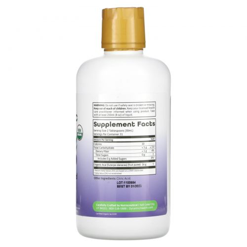 Описание товара Dynamic Health Laboratories, Acai Gold, сертифицированный органический 100% сок асаи, 946 мл (32 жидк. унции)