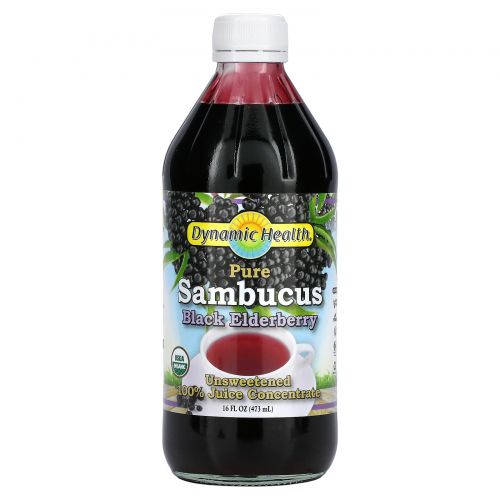Dynamic Health Laboratories, Pure Sambucus, 100% концентрат сока черной бузины, неподслащенный, 473 мл (16 жидк. унций)
