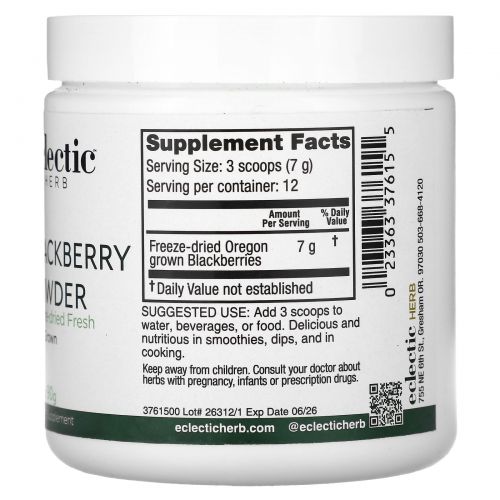 Описание товара Eclectic Institute, Ежевика в порошке, сырая, 3,2 унции (90 г)