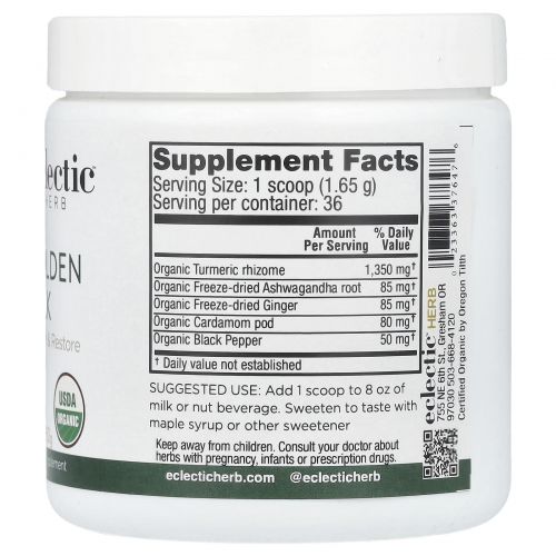 Описание товара Eclectic Institute, Golden Milk, 2.1 oz (60 g)