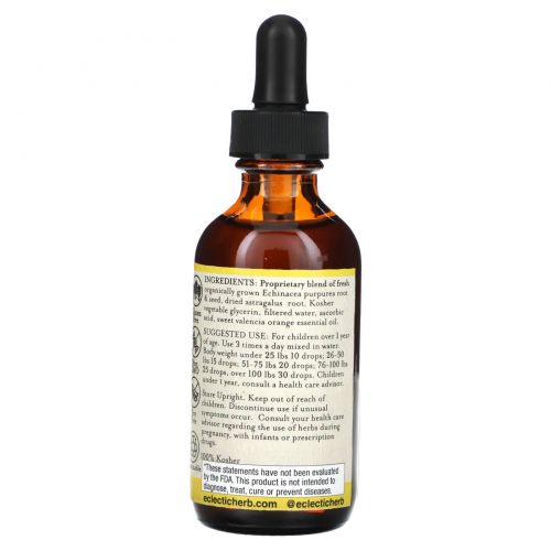 Описание товара Eclectic Institute, Kid Herbs, Echinacea, Astragalus, Orange, 2 fl oz (60 ml)