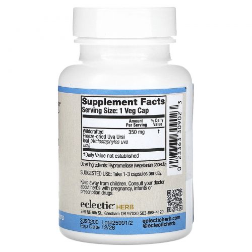 Описание товара Eclectic Institute, Толокнянка обыкновенная, 350 мг, 90 растительных капсул без ГМО