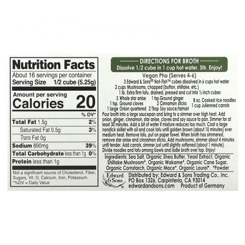 Бульонные кубики Edward & Sons® Not-Fish ™ позволяют приготовить полезный и вкусный бульон за считанные секунды, используя всего лишь горячую воду. Просто смешайте его с горячей водой, чтобы получить вкусный рыбный бульон на растительной основе, или добавьте в супы, рагу и соусы в качестве секретной приправы от шеф-повара. Отлично подходит для добавления восхитительного «рыбного» вкуса любимым блюдам!