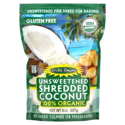 Подходит для веганской, безглютеновой, палеолитической диеты и других видов особых диет. Органический измельченный кокос Let's Do...Organic без подсластителей может понравиться практически любому. Этот вкусный, универсальный ингредиент может стать фаворитом выбирающих здоровую домашнюю выпечку.