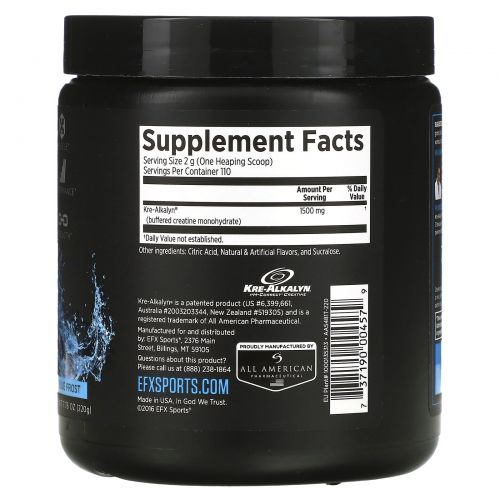 Описание товара EFX Sports, Kre-Alkalyn EFX, порошок, со вкусом «Морозная свежесть», 220 г (7,76 унции)