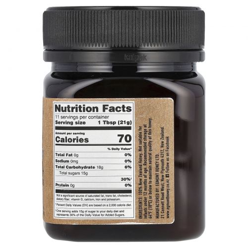 Описание товара Egmont Honey, Multifloral Manuka Honey, Raw And Unpasteurized, MGO 100+, 8.82 oz (250 g)