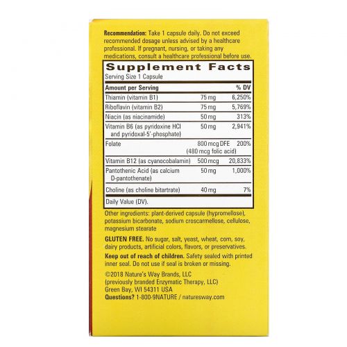 Описание товара Nature's Way, Фантастическая усталость, ежедневная энергия комплекса витаминов B, 120 растительных капсул
