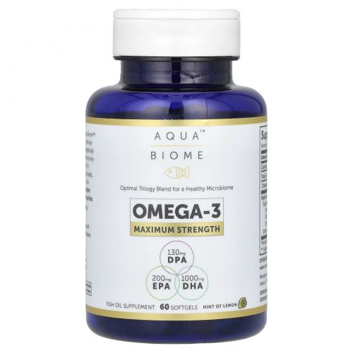 Описание товара Enzymedica, Aqua Biome, рыбий жир, максимальная сила, лимонный вкус, 60 гелевых капсул