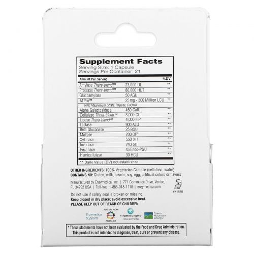Enzymedica не использует ингредиенты, полученные с помощью биотехнологий.