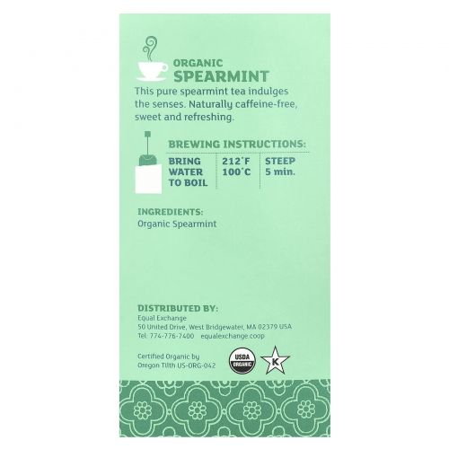 Описание товара Equal Exchange, Organic Spearmint Herbal Tea, Caffeine-Free, 20 Tea Bags, 0.99 oz (28 g)