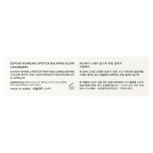 Описание товара Espoir, Помада Nowear Balming Glow, RD203, клюква, 3 г