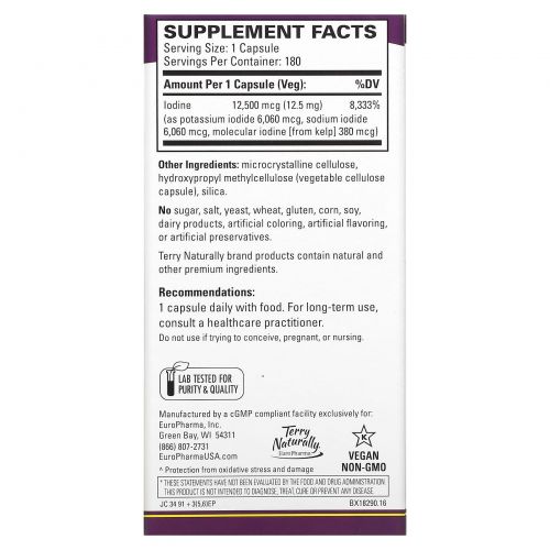 EuroPharma, Terry Naturally, Terry Naturally, Tri-Iodine, 12,5 мг, 180 капсул