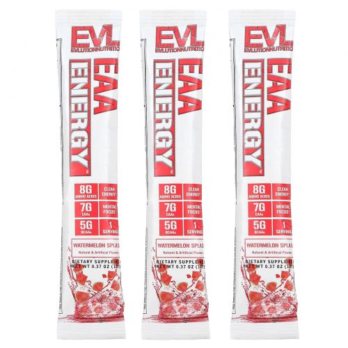 Описание товара EVLution Nutrition, EAA Energy, арбузный спрей, 3 шт. в упаковке, 10,5 г (0,37 унции)