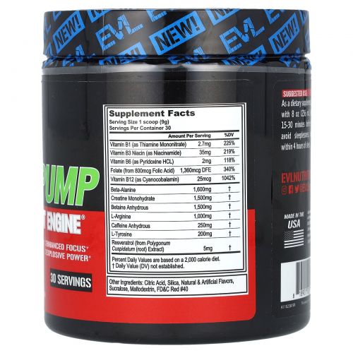 Описание товара EVLution Nutrition, Enrn Pump, предтренировочный комплекс, со вкусом вишневого лаймада, 270 г (9,52 унции)
