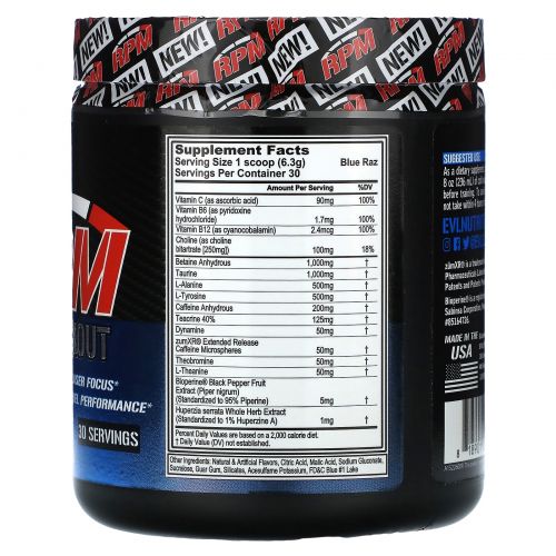 Описание товара EVLution Nutrition, RPM, перед тренировкой, синяя ветвь, 189 г (6,67 унции)
