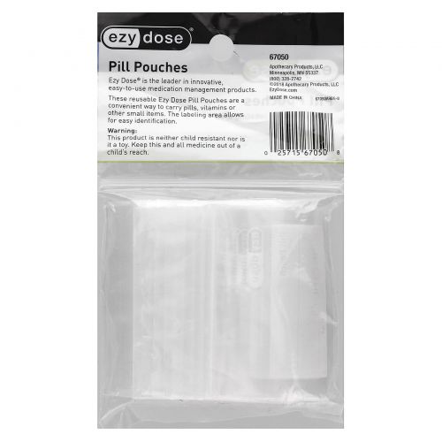 В этих многоразовых пакетиках Ezy Dose удобно хранить таблетки, витамины и другие мелкие предметы. Участок для маркировки позволяет легко идентифицировать продукт.