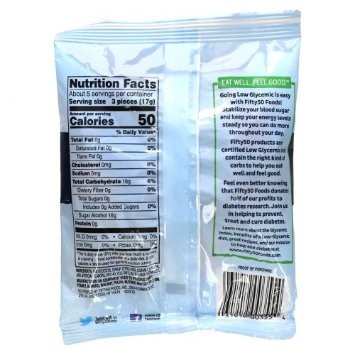 Описание товара Fifty 50, Карамель с низким гликемическим индексом, ассорти, 78 г (2,75 унции)