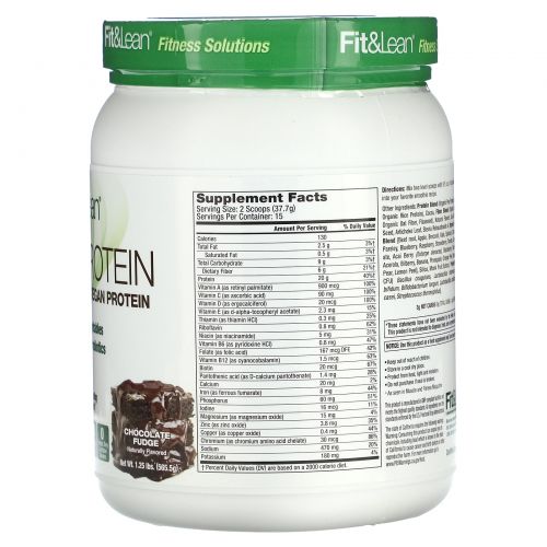 Описание товара Fit & Lean, Plant Protein, Chocolate Fudge, 1.25 lb (565.5 g)