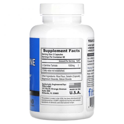 Описание товара FITCODE, L-карнитин, повышенная сила действия, 500 мг, 120 капсул
