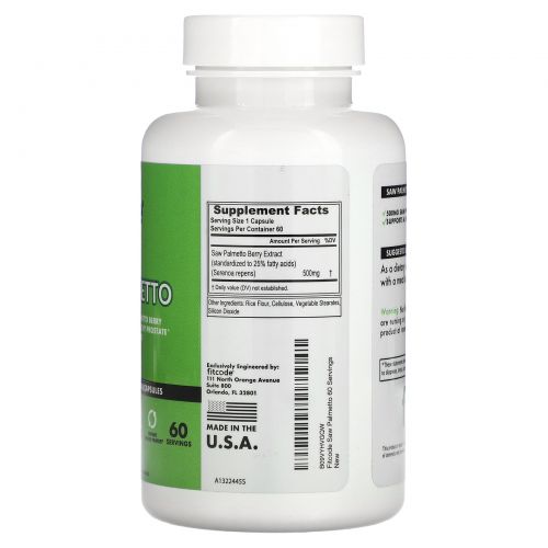 FITCODE, Сереноа, 500 мг, 60 растительных капсул
