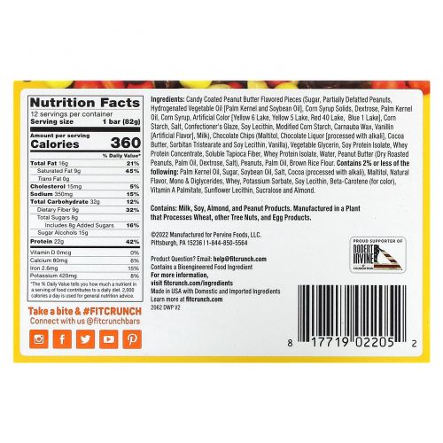 Описание товара FITCRUNCH, Батончик из загруженного протеина, со вкусом арахисовой пасты, 12 батончиков, по 2,89 (82 г)