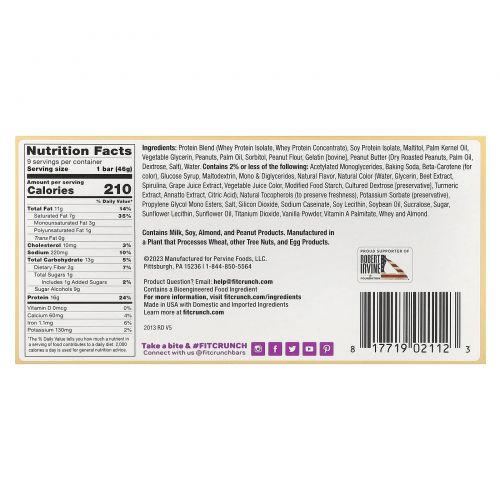 Описание товара FITCRUNCH, Fit Crunch, батончик с высоким содержанием протеина, арахисовая паста и желе, 9 батончиков, 46 г (1,62) каждый