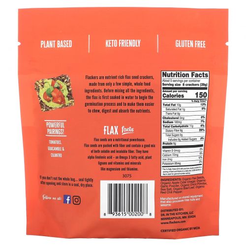 Описание товара Flackers, крекеры из семян льна, пикантный, 142 г (5 унций)