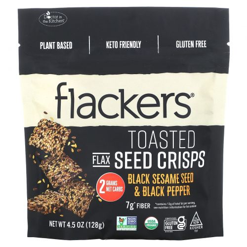 Flackers, снеки из обжаренных семян льна, семена черного кунжута и черного перца, 128 г (4,5 унции)