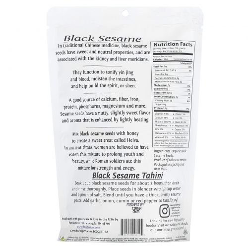 Описание товара Foods Alive, Суперпродукты, черный кунжут, 14 унций (395 г)