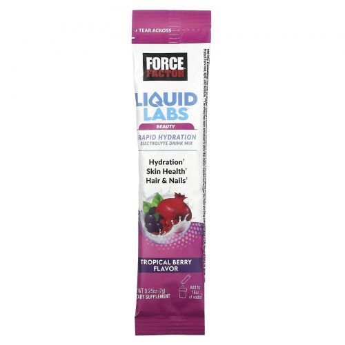 Force Factor, Liquid Labs Beauty, смесь для быстрого увлажнения и электролитов, тропические ягоды, 20 пакетиков по 7 г (0,25 унции)