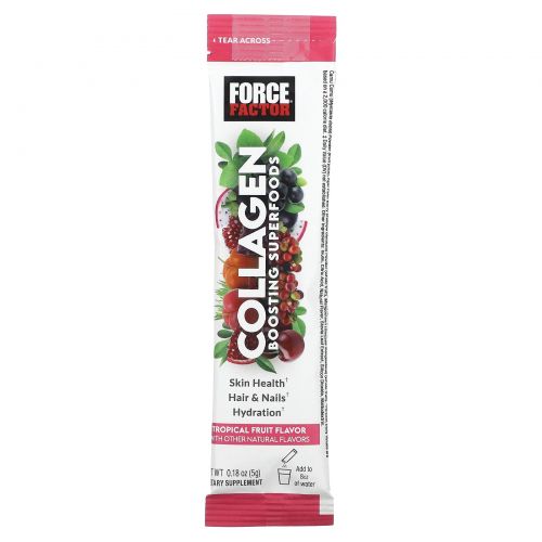 Описание товара Force Factor, Суперфуды для повышения уровня коллагена, тропические фрукты, 20 пакетиков по 5 г (0,18 унции)