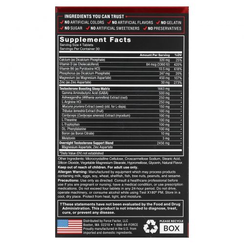 Описание товара Force Factor, Test X180 PM, ночной бустер тестостерона, 120 таблеток