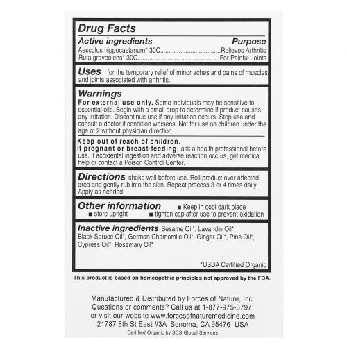 Описание товара Forces of Nature, Средство от боли в суставах, с шариковым аппликатором, 4 мл (0.14 унции)